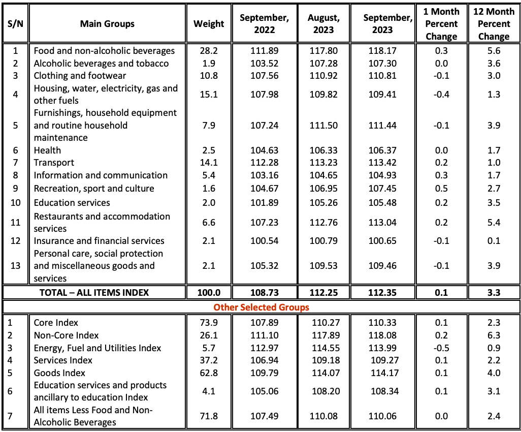 The National Consumer Price Index for September 2023 has increased to 112.35 from 112.25 which was recorded in August 2023.