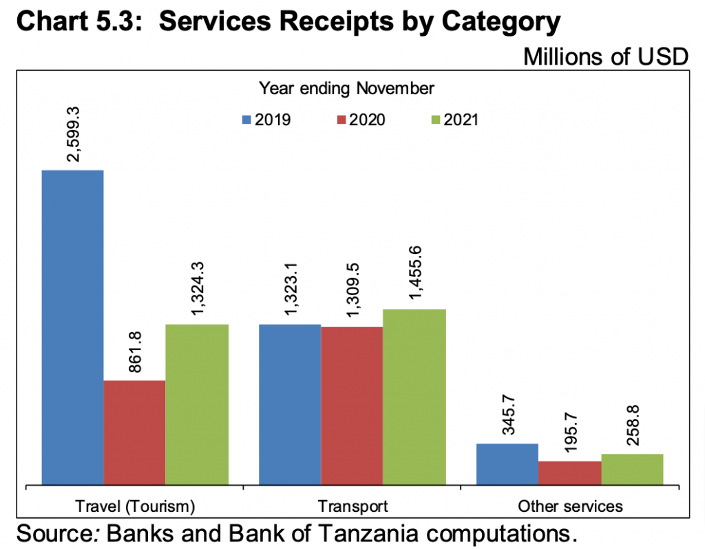 Tanzania Exports of Servcies (Tourism) YE November 2021