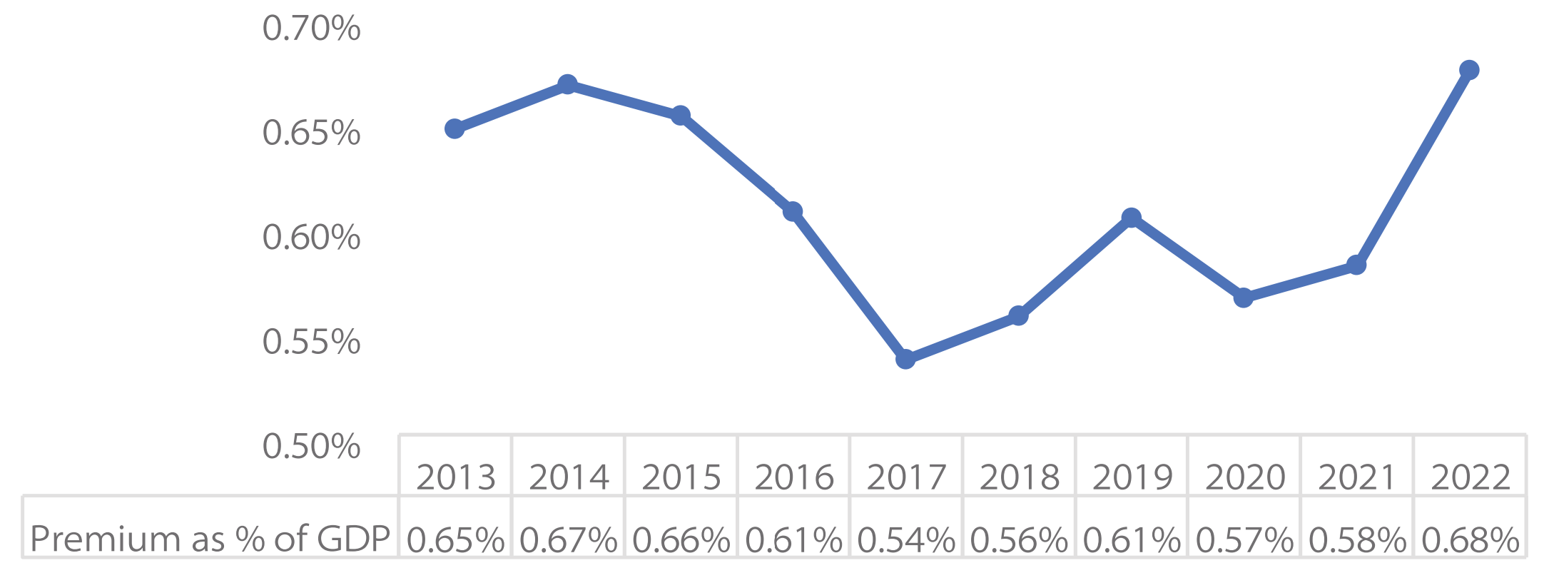 Tanzania Commercial Insurance Penetration as Contribution of GDP, 2013–2022