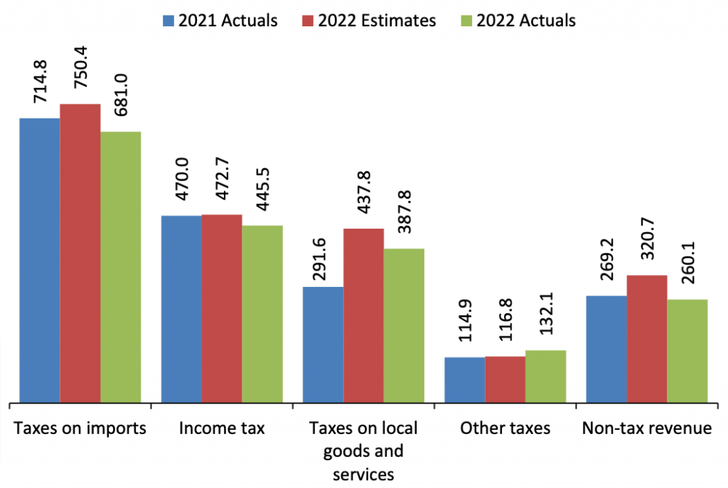 Tax revenue was TZS 1,646.4 billion, or 92.6% of the monthly target and 3.5% higher than collections recorded in November 2021.