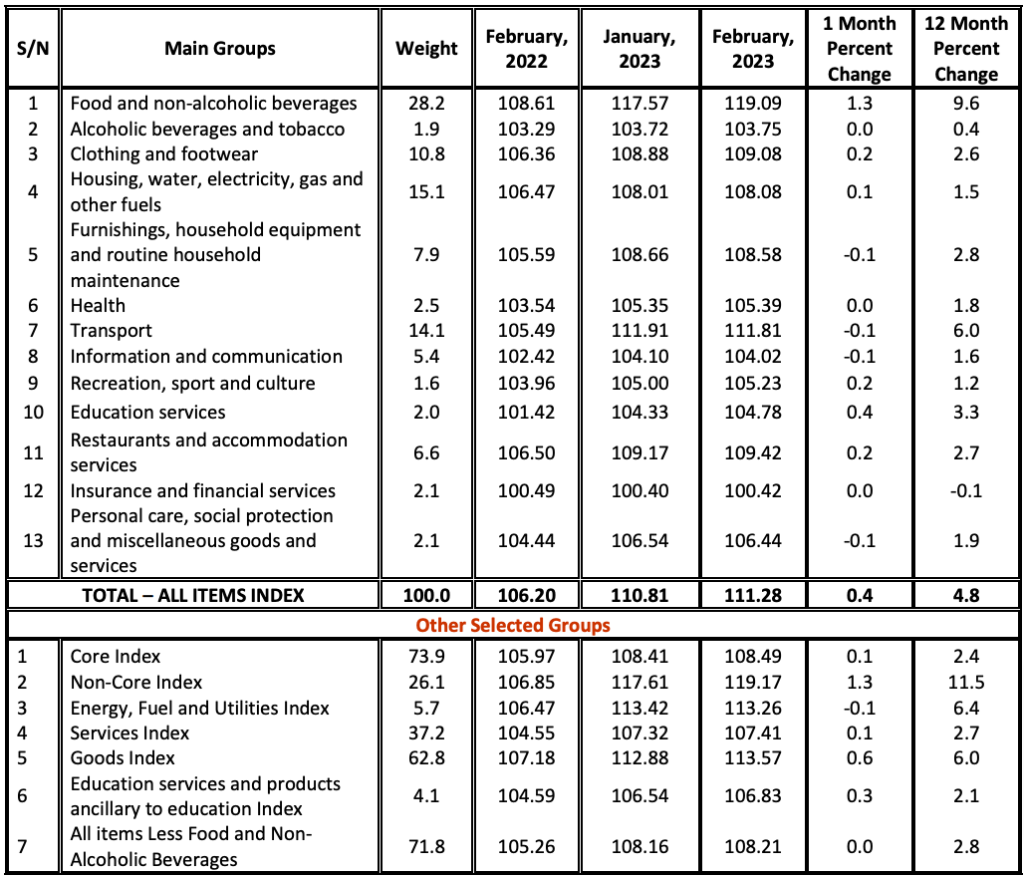 Meanwhile, the overall index went up from 106.20 recorded in February 2022 to 111.28 in February 2023.