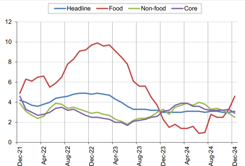 In December 2024, headline inflation was 3.1%, compared to 3% in December 2023.