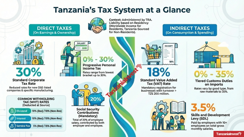 Disclaimer The information provided on this page is for general informational purposes only and does not constitute tax, legal, or professional advice. Tax laws, regulations, rates, and administrative practices are complex and subject to change and may vary depending on individual circumstances and interpretation by tax authorities. While reasonable efforts are made to ensure accuracy, TanzaniaInvest makes no representations or warranties regarding the completeness or applicability of the information. Readers are advised to seek independent advice from qualified tax professionals, legal advisors, or the Tanzania Revenue Authority before making any tax-related decisions. TanzaniaInvest accepts no liability for any loss or damage arising from reliance on this information.